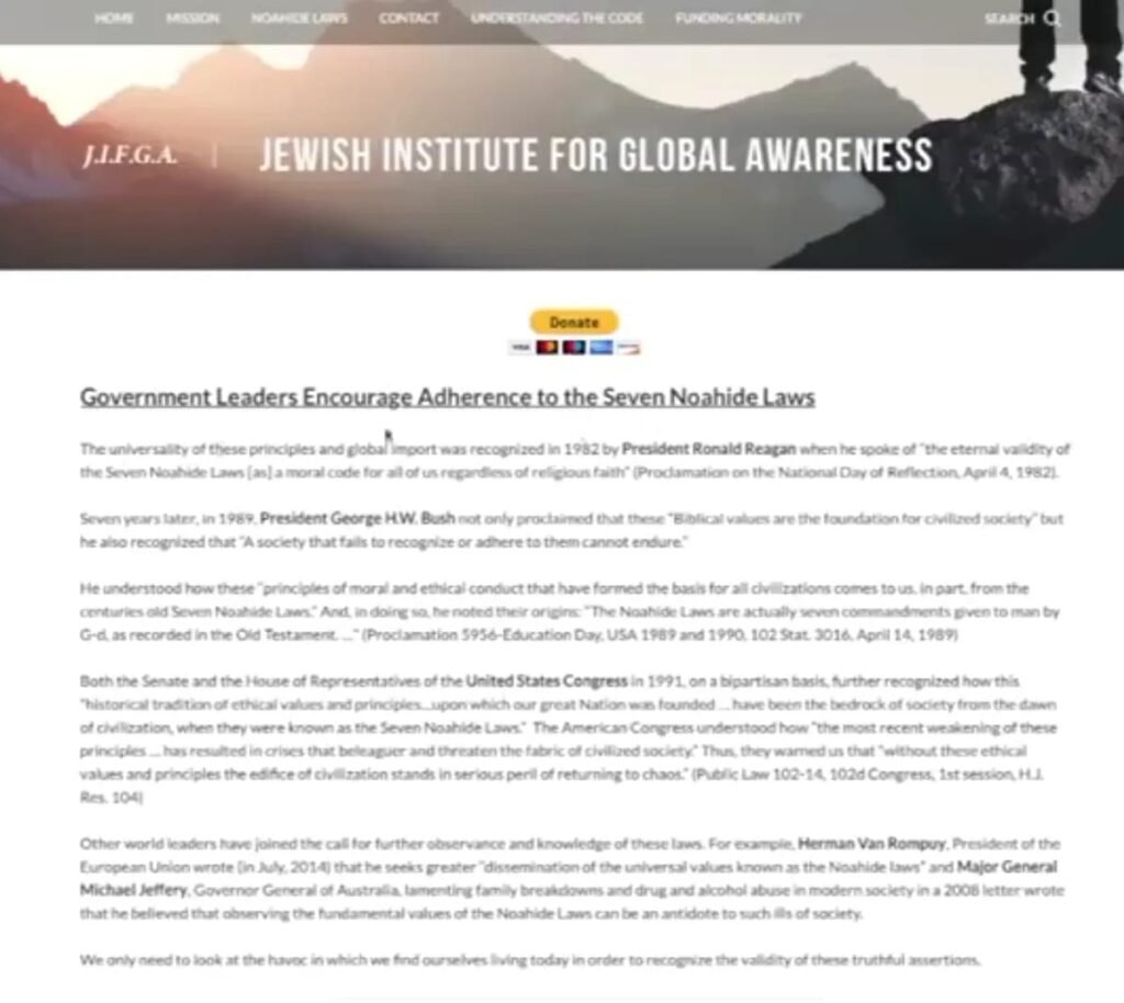 “विभिन्न संस्कृतियों की विविधता का सदुपयोग करने का यही सही अर्थ है। यही हमारे संगठन के लक्ष्य की नींव है, जिसके तहत हम संयुक्त राष्ट्र (UN) और अन्य सहयोगी संगठनों के साथ मिलकर मानवाधिकारों और विकास को बढ़ावा देने और धार्मिक स्वतंत्रता की रक्षा करने की उम्मीद रखते हैं। ”इसमें आगे कहा गया है — “उनका धर्म, नूह के सात सार्वभौमिक नियम, वे साधन हैं जिनके द्वारा मानवता एकता और शांति से रहने का प्रयास करती है। नूह के नियम या नोआइड नियम सात सार्वभौमिक नियमों से मिलकर बने हैं, जो बाइबिल के अनुसार समस्त मानवता पर बाध्यकारी हैं।”