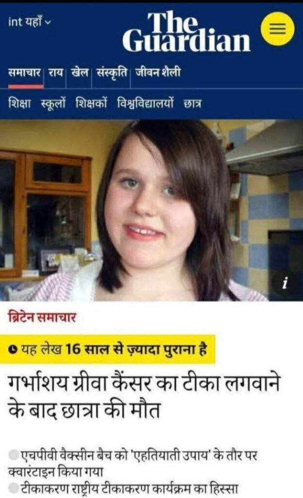 HPV वैक्सीन लगाए जाने के बाद बच्चियों की बिगड़ी तबीयत. माँ-बाप से अनुमति लिए बिना लगाए गए इंजेक्शन. मध्य विद्यालय बगडहरा, जोकीहाट (अररिया ज़िला, बिहार) का मामला. परिजनों ने क्या कुछ कहा देखिए वीडियो में (14 फ़रवरी 2026): https://www.facebook.com/share/v/1AeCYqqG3C/