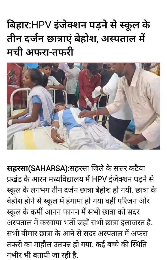कही जगह लगवा चुके है जहा से खबरे आ रही है की बच्चे HPV वैक्सीन के लगाने के कुछ समय बाद या तुरत की बेहोश हो गए या बीमार पड़ गए है