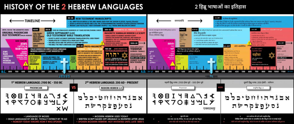 आज इस्तेमाल होने वाली नई आधुनिक बोली और लिखित हिब्रू 2.0 भाषा, वही वास्तविक प्राचीन “पैलियो हिब्रू” नहीं है, बल्कि इसका आविष्कार यीशु मसीह के जीवन और उपदेशों के बाद हुआ था , और यह विलुप्त हो चुकी प्राचीन पैलियो हिब्रू से पूरी तरह से अलग भाषा है।