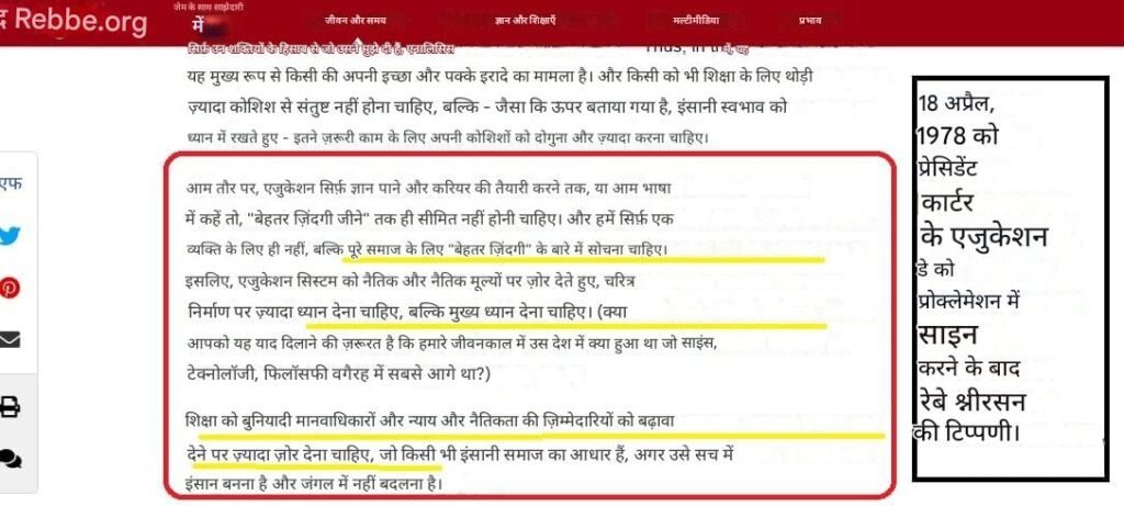 - 1978 से अब तक हर अमेरिकी राष्ट्रपति द्वारा Education Day / Education & Sharing Day घोषित