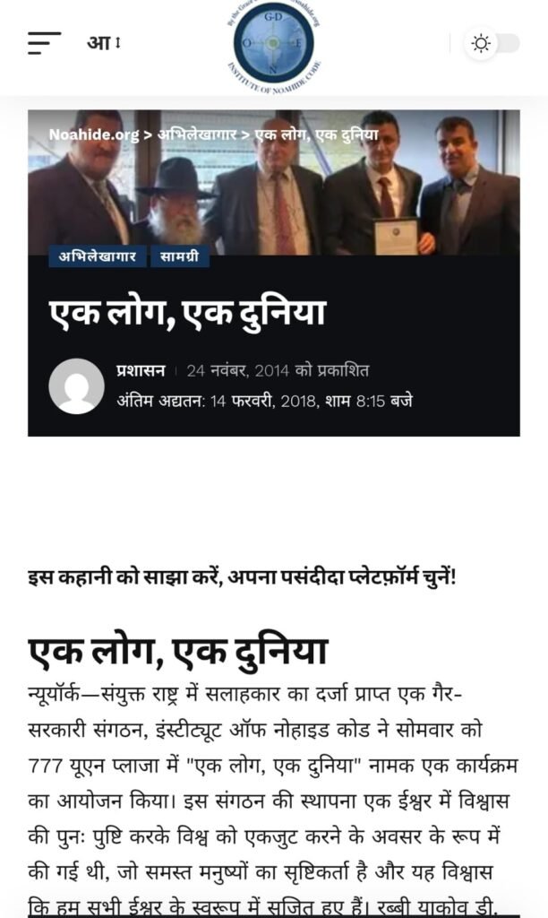 नोहाइड कोड संगठन का लिंक ( जिसकी स्थापना रेब्बे श्नेर्सन ने की थी, जिनके ‘कानून’ के संस्करण के आगे राष्ट्रपतियों ने घुटने टेक दिए थे)